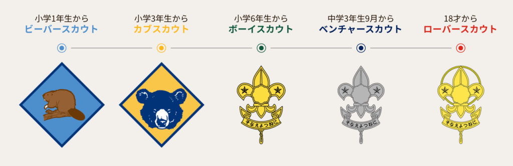 ※ただし、ビーバースカウトについては、子供の年齢が小さいことから保護者の方の同伴を原則としております。